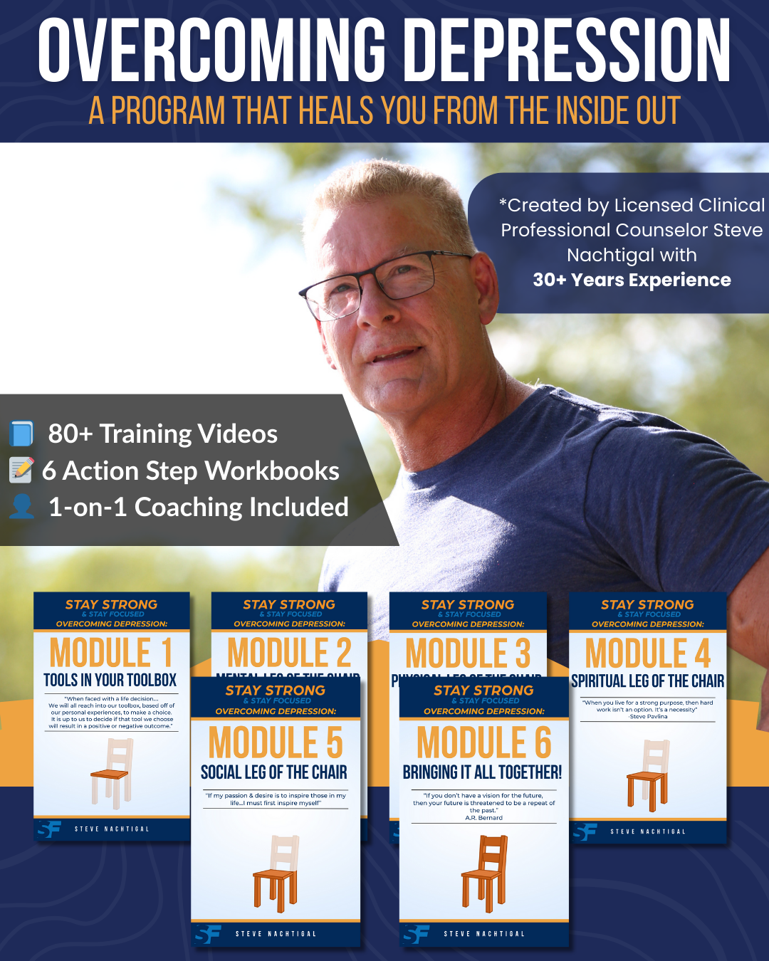 The Stay Strong and Stay Focused: Overcoming Depression Program is a culmination of my 30+ years as a Mental Health Counselor with 20+ years of that in my Private Clinical Counseling Practice! The Stay Strong & Stay Focused: Overcoming Depression program is PACKED with over 70 virtual teaching video's and Action Step workbooks for EACH video!